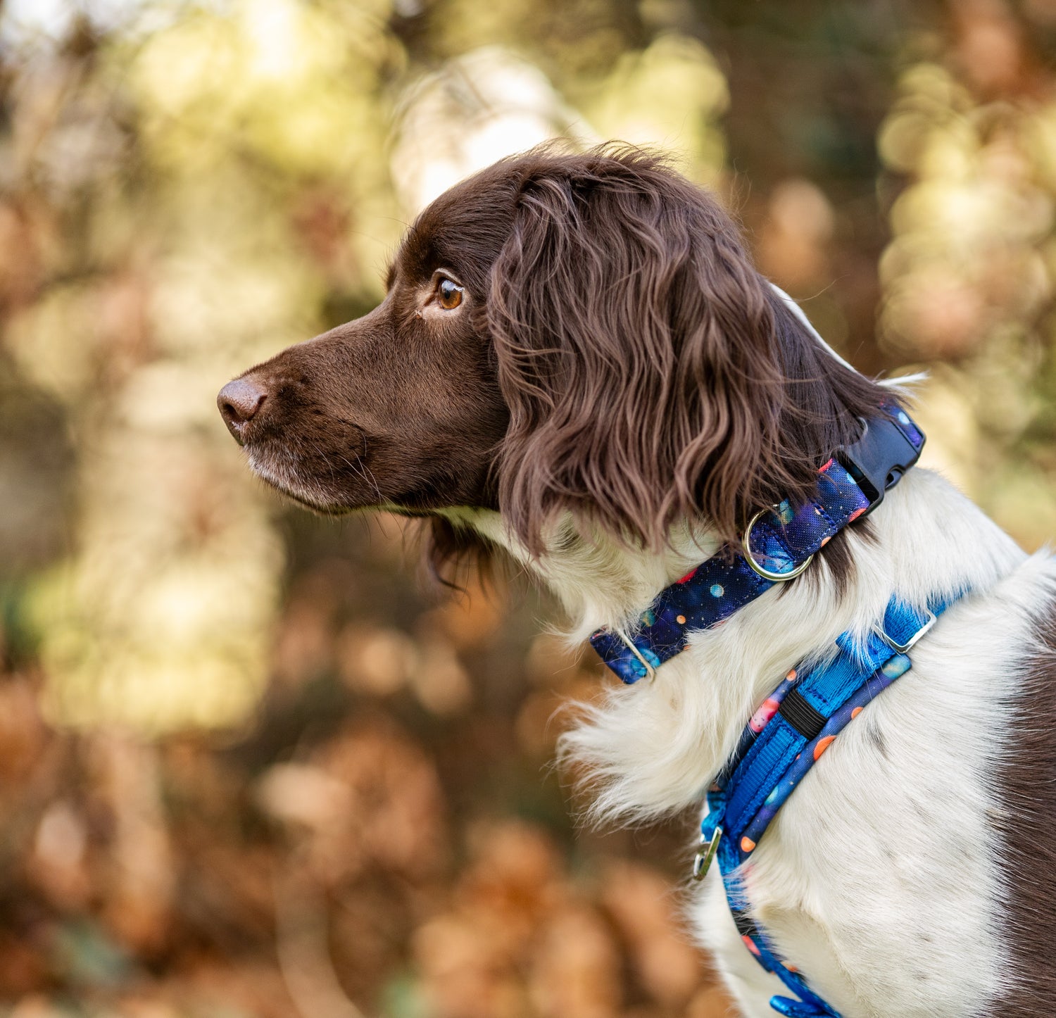 We believe that every dog is unique, just like the bond they share with their owners. That's why we offer custom options for all our products, from custom patterned escape proof harnesses to matching martingale headcollars, so that you can tailor your dog's gear to their personality, with a range of colors and patterns to choose from. Our commitment to high-quality workmanship ensures that your dog's accessories are not only stylish but also durable.