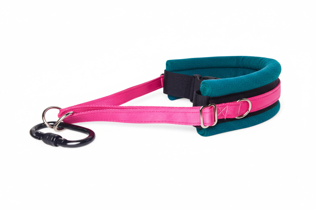 Designed for hands free walking of one or multiple dogs, the walking belt takes the strain out of walking dogs who pull by making the point of attachment lower in your centre of gravity and spreading the force of the dogs pulling around your hips, leaving you with no aching arms and lowering the chances of being pulled over.